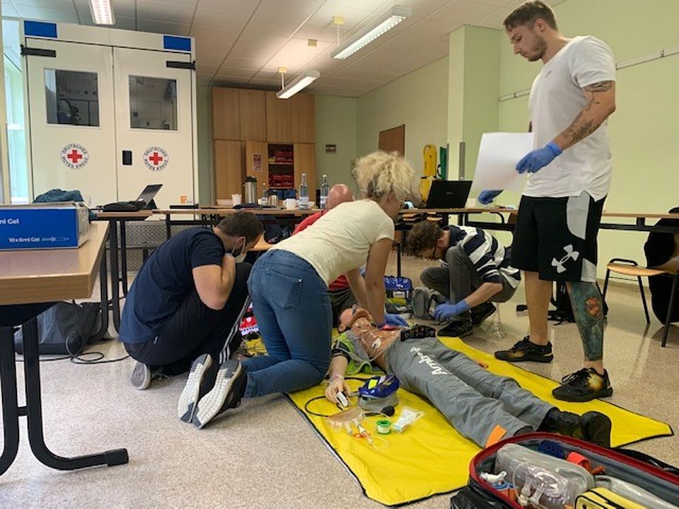 Am 24. und 25.08.2021 führten die fachpraktischen Dozent*innen des DRK-Bildungszentrum Teterow unter der Leitung von Martin von der Heyden von der ecolea Private Berufliche Schule Warnemünde einen ACLS Kurs (Advanced Cardiovascular Life Support - Erweiterte Maßnahmen der kardiovaskulären Reanimation) der American Heart Association (AHA) durch.