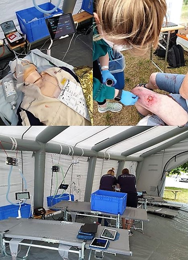In Kooperation mit dem DRK-Landesverband Mecklenburg-Vorpommern e. V. gastierte die Forschungsgruppe derzeit im DRK-Bildungszentrum Teterow und führte mit Ärzten und nichtärztlichen Personal aus unserem Bundesland vom 24. - .27. Juni mehrere Durchläufe dieser Simulation im Rahmen des Aufbaus der Medical Task Forces durch. Als Verletzte agieren professionelle Schauspieler, die durch die Realistiker unseres Jugendrotkreuzes geschminkt werden. Eine tolle Erfahrung für die Teams, die sich zur Mitwirkung an dieser praxisnahen Studie angemeldet haben.
