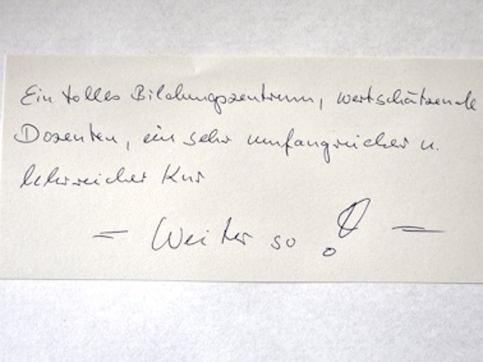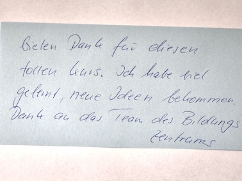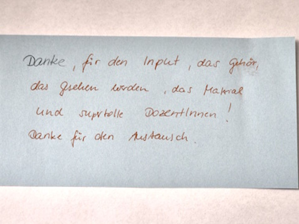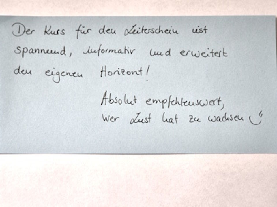Alle 17 Kursteilnehmer*innen haben sich ihr Zertifikat redlich verdient. Nach 11 Monaten des gemeinsamen Lernens wurde es gestern und heute noch einmal aufregend. Nicht für jede*n ist es eine Selbstverständlichkeit, ein ausgearbeitetes Thema, welches häufig mit einem selbst viel zu tun hat, zu präsentieren. Aber alle haben es gut gemeistert. Mit kreativen Präsentationen der Hausarbeitsthemen hat sich die Gruppe im Abschlusskolloquium noch einmal mit interessanten Beiträgen beschenkt.