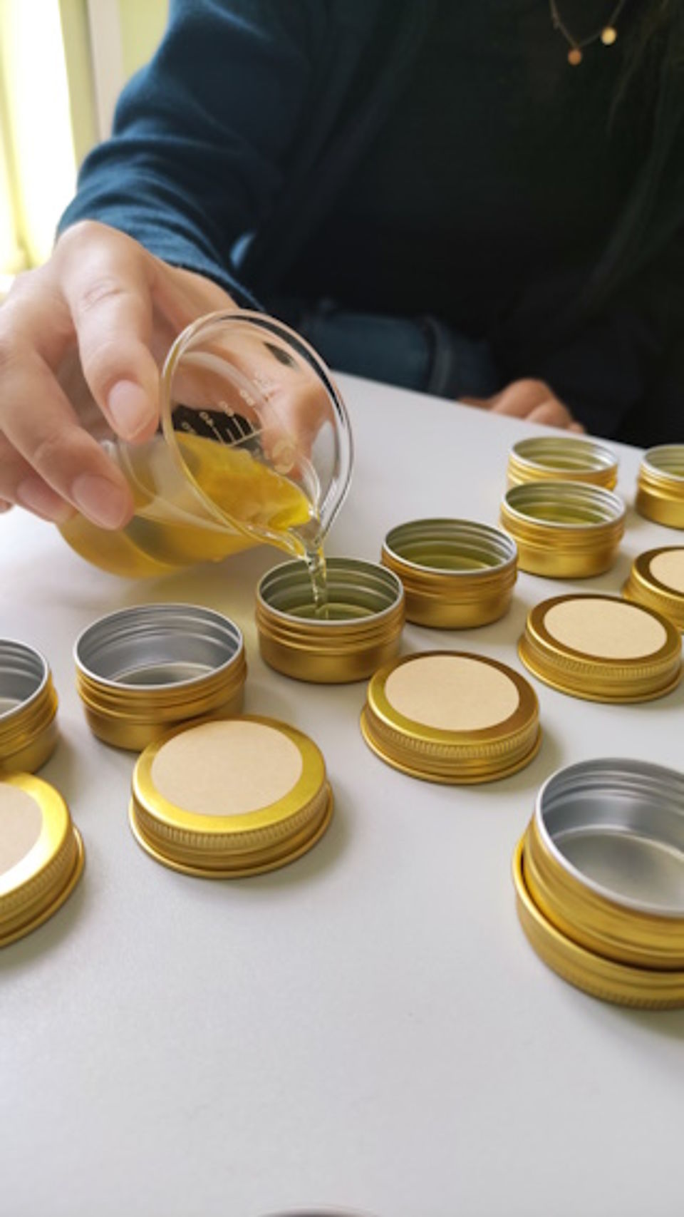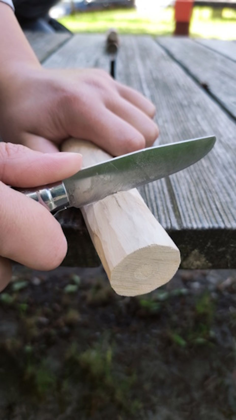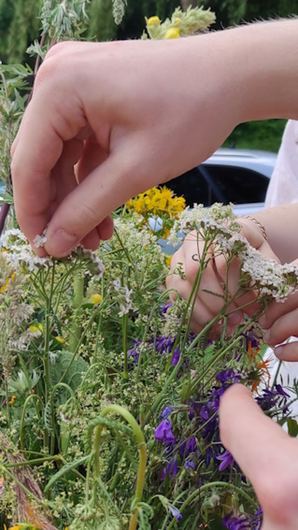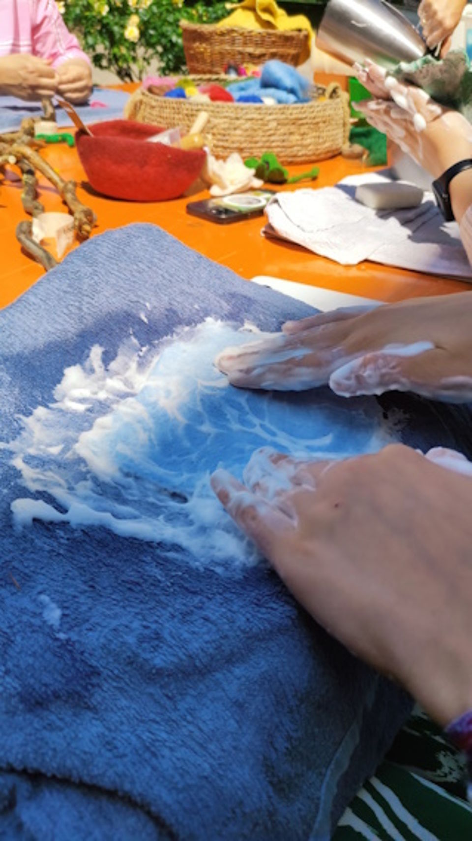 Höhepunkt war die ausgiebige Arbeit in den verschiedenen Stationen. Unter anderem wurde aus Naturmaterialien Salbe oder auch Seife hergestellt. Insbesondere bei der Seife erforderte dies einiges an manueller Arbeit. Ebenso wurden aus Holz Vogelpfeifen und Klangfrösche hergestellt. Hier bewiesen die Schüler*innen Ausdauer und Geschicklichkeit. Auch mit Textilien wurde gearbeitet. So wurden durch rabiate Nutzung von Hämmern die Farbe von eigenen gesammelten Blüten auf kleine Jute-Beutel übertragen, sodass jeder Beutel zu einem Einzelstück wurde. An der Filzstation wurden Kleeblätter, Marienkäfer und weitere thematisch passende Stücke gefertigt.