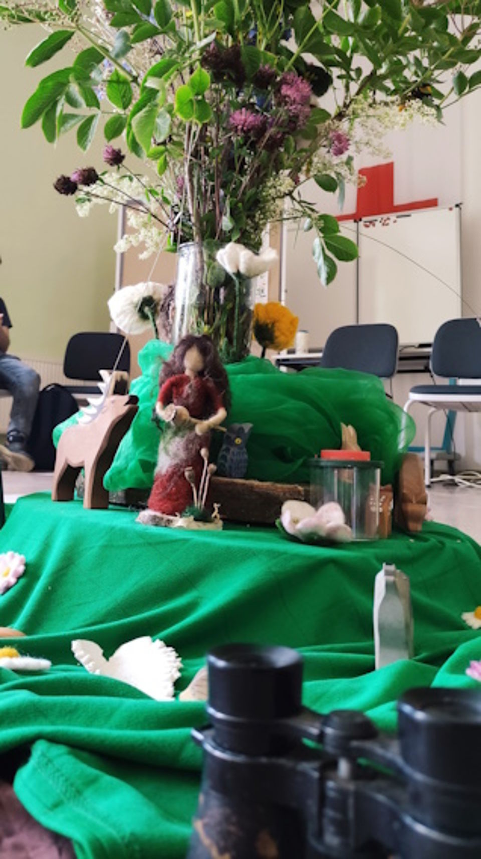 Über die praktische Arbeit hinaus stellten die Dozentinnen umfangreiches Informationsmaterial und Bücher zur Verfügung. Die Teilnehmenden waren von dem Tag sichtlich begeistert und haben sicherlich einige Impulse, wie sich naturpädagogische Möglichkeiten in die praktische Arbeit integrieren lassen, mitnehmen können.