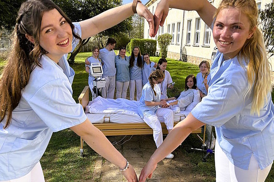 darstellen. Sie wollen sagen: „Wir sind stolz auf das, was wir lernen und auf unseren zukünftigen Beruf in der Pflege!“.